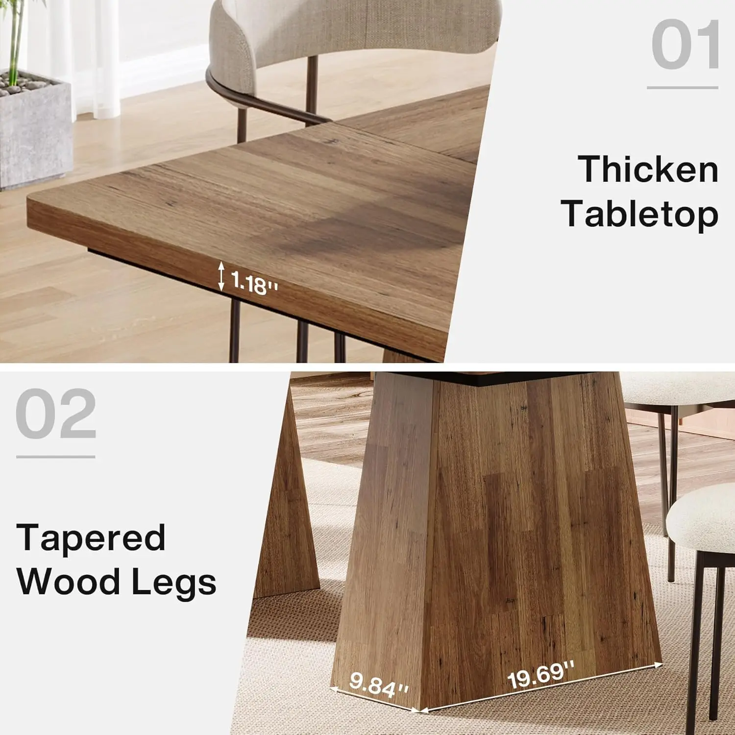 Whether hosting a casual brunch, a formal dinner, or using it as a workspace for your creative projects, this dining room table's versatile design makes it well-suited for any occasion. Its minimalist aesthetic allows it to complement various dining room themes and settings easily