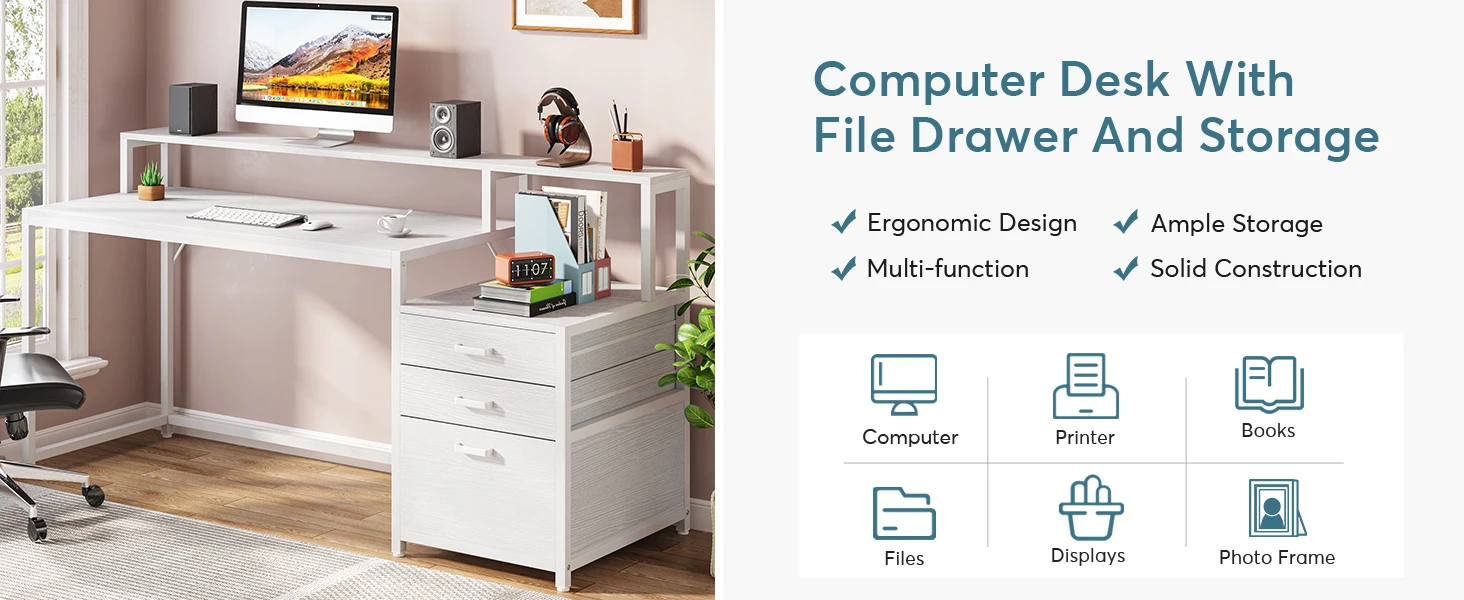 Computer Desk with File Drawer Cabinet, Ergonomic Office Desk ,Wood PC Table Workstation Desk for Home Office